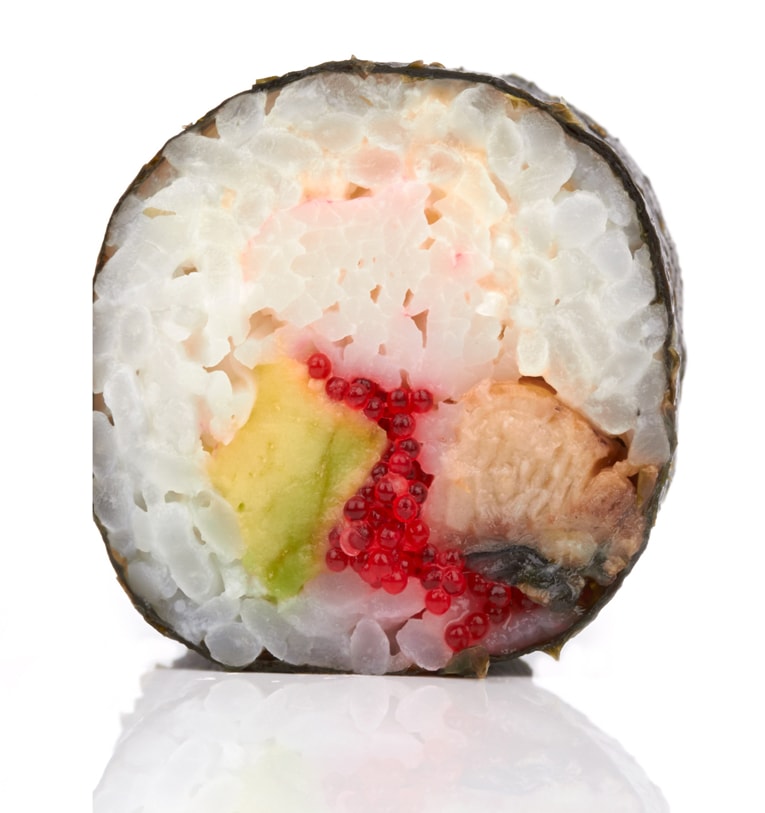 Fresh salmon, tuna, crabstick, and avocado wrapped in a thin slice of cucumber, topped with tobiko and a light ginger dipping sauce